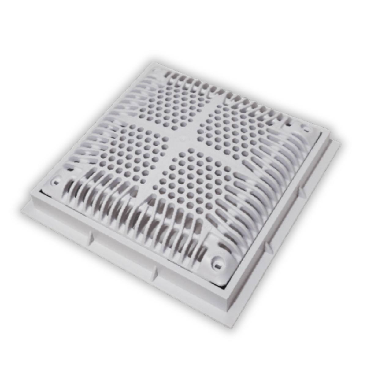 Su diseño de rejilla cumple con las normativas de seguridad vigentes para prevenir el atrapamiento por succión, lo que lo convierte en un elemento clave de protección para los bañistas. Es perfecto para su instalación en el fondo o en las paredes de las piscinas.